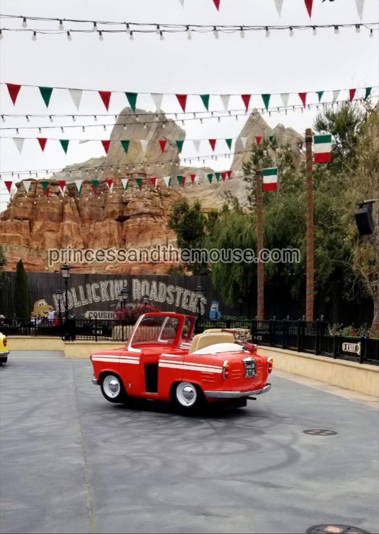 After everyone got off Mission Breakout we went to my favorite area of Disney’s California Adventure and that is Carsland. We had a fastpass for Radiator Springs Racers but we had plenty of time to explore. We also took this time to ride some of the other rides in Carsland. Those include Mater’s Junkyard Jamboree and Luigi’s Rollickin’ Roadsters. The theming in Carsland is absolutely amazing. I love everything in this area. So much theming you will feel like you are in the middle of Radiator Springs.