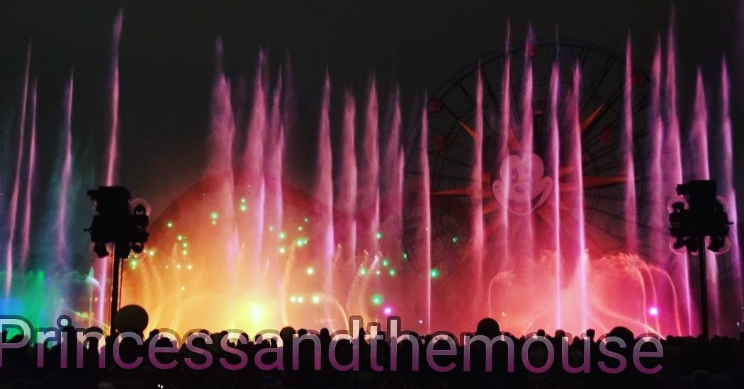 We had no dining reservations for this day. We stopped for a hotdog on Mainstreet before heading back to California Adventure to see World of Color. This show takes place over the water in front of the Pixar Pier. There is amazing music, lights and water curtains display scenes from your favorite Disney movies. This was my first time seeing it, as it was down for refurbishment the last time I was there. I will admit parts of this show made me cry.